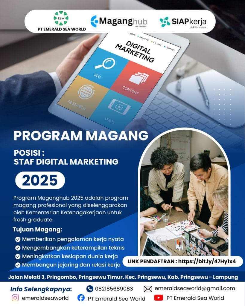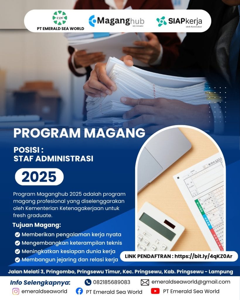 Banyak lulusan baru ingin menambah pengalaman sebelum benar-benar memasuki dunia kerja profesional. Salah satu kesempatan yang paling diminati adalah Program Magang Kemnaker Batch 2 PT Emerald Sea World yang hadir pada tahun 2025. Program ini menjadi wadah berharga bagi para fresh graduate untuk belajar langsung di sektor administrasi, pendidikan dan training. Tak hanya mendapatkan pengalaman praktik nyata, peserta juga berkesempatan memperoleh uang saku serta sertifikat resmi dari pemerintah.