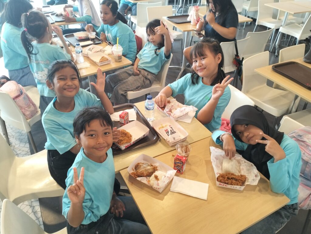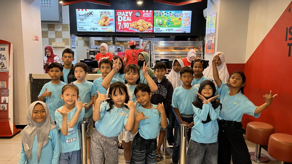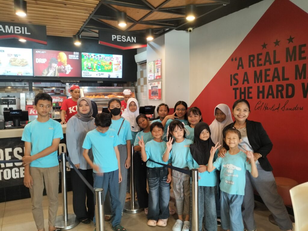Kegiatan berlangsung dengan suasana yang interaktif dan menyenangkan. Anak-anak tampak antusias dan percaya diri saat berkomunikasi dengan petugas KFC. Instruktur dan pendamping dari House of Learning turut memberikan arahan serta motivasi agar peserta berani berbicara dan menerapkan kosakata yang telah dipelajari di kelas.
